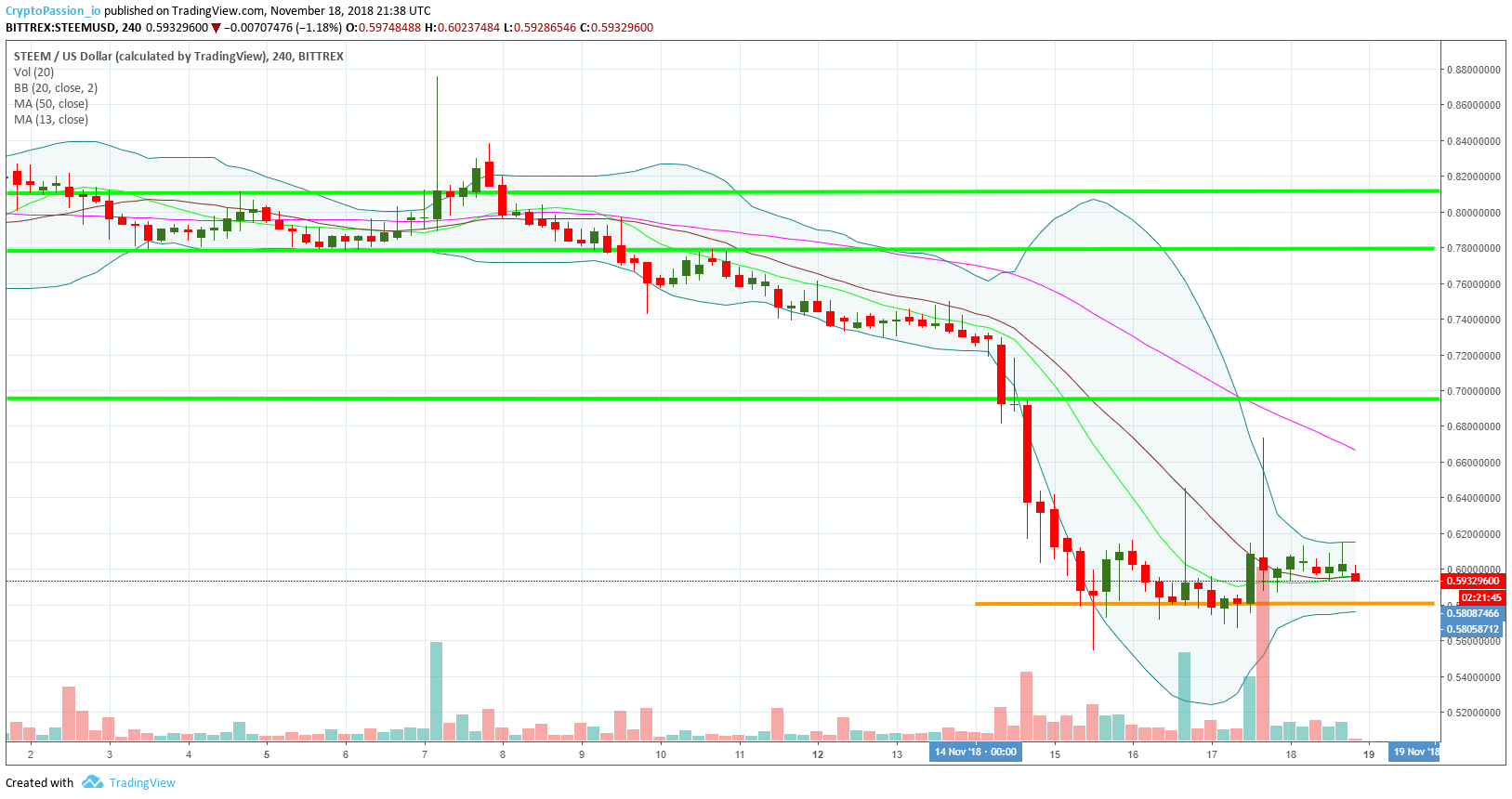The Support line has not been tested since hours now and we are taking some distance from it. We need now to see what will be the reaction of the market if we have a new correction. We must have a bounce on that line and not break it or we will make new lows on the STEEM. Let's see what the market will o this monday.