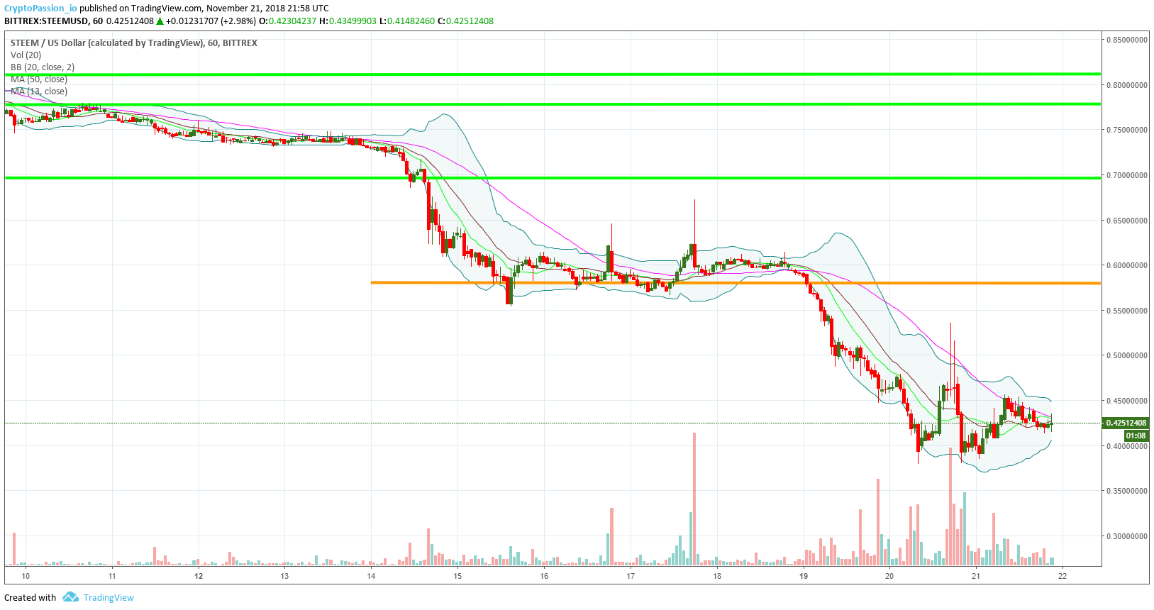 The STEEM is currently in consolidation after the last drop. We have the start of a triangle pattern but I think the pattern is less clean than on the BTC so I didn't traced it. You can check the triangle that I traced on the BTC to have an idea for the STEEM. Will the break out will be a UP or a DROP, no one can be sure so prepare yourself for it and follow the trend.