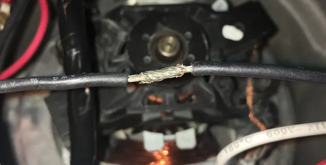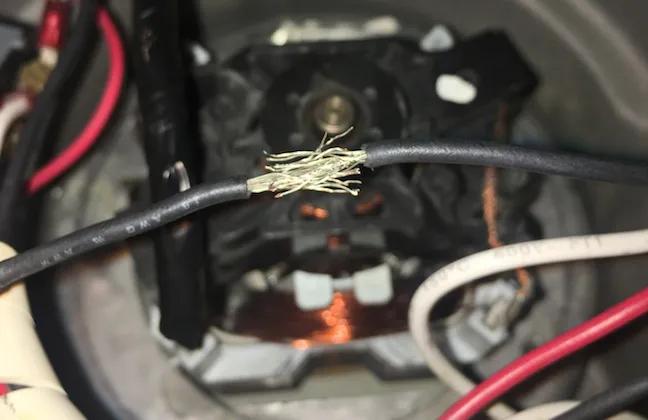 - The two vacuum wires got wrapped around each other and worn through by the spindle in the middle of the motor.