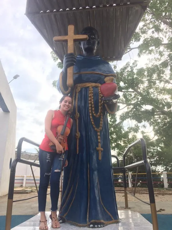 Listening to the story go through a square where there was a statue of San Benito and I could not stop paying tribute, between your drum beat I played the song Tamborera Nº 9 , interpreted by El Gran Coquivacoa A group of Gaita very recognized in my country and are from Cabimas, a tribute to the saint with his chimbangleros, which as the song says: