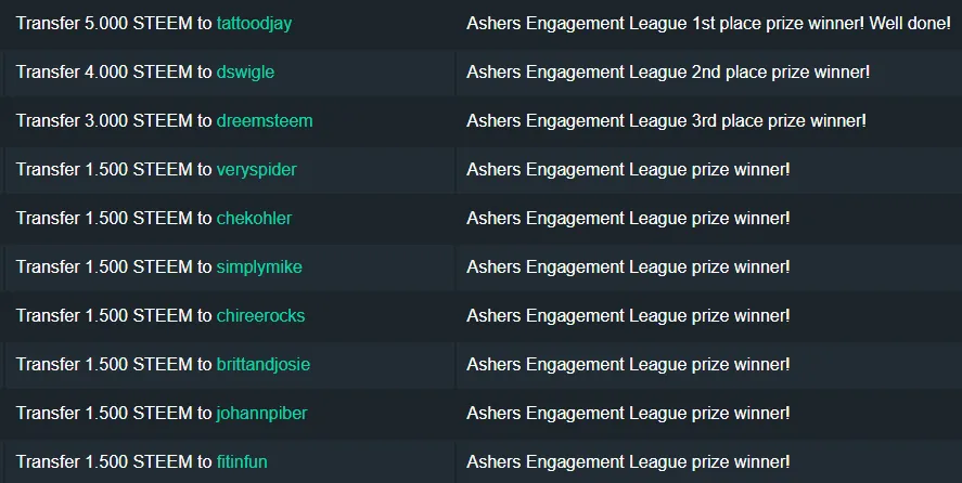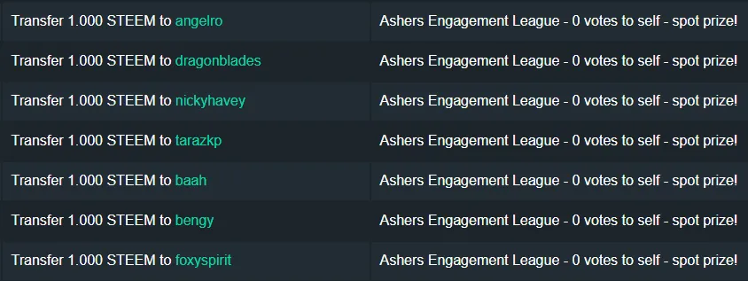 Those without a self-vote and placed in the top ranks will also receive a little STEEM. These people are: @angelro, @dragonblades, @nickyhavey, @tarazkp, @baah, @bengy, and @foxyspirit.