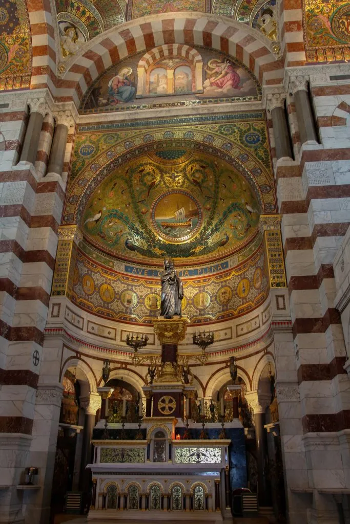 8: The interior of Notre Dame De La Garde has exquisite gold and mosaic work.