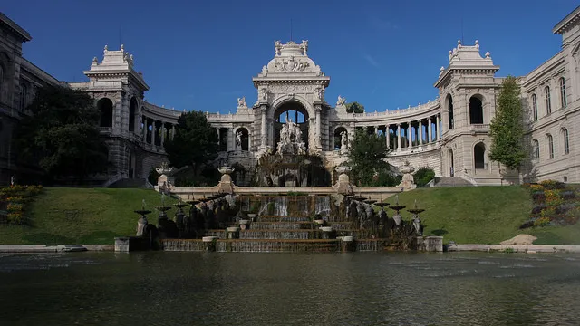 6: Palais Longchamp Construction was started in 1839 and took 30 years to complete. The central fountain pictured is called château d'eau , or water castle. It was built to commemorate the Canal de Marseille, which connects to the Durance river 80km away in order to supply the city with fresh water.