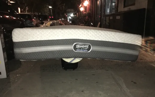 I have a sharp eye for value and quickly noticed the prominent label on the mattress. I usually ignore mattresses since I don't have the space to collect them, and for sanitation reasons, but there's good money in reselling the luxury ones. In fact, there's a van that drives around all of the time that exclusively collects the good ones to resell.
