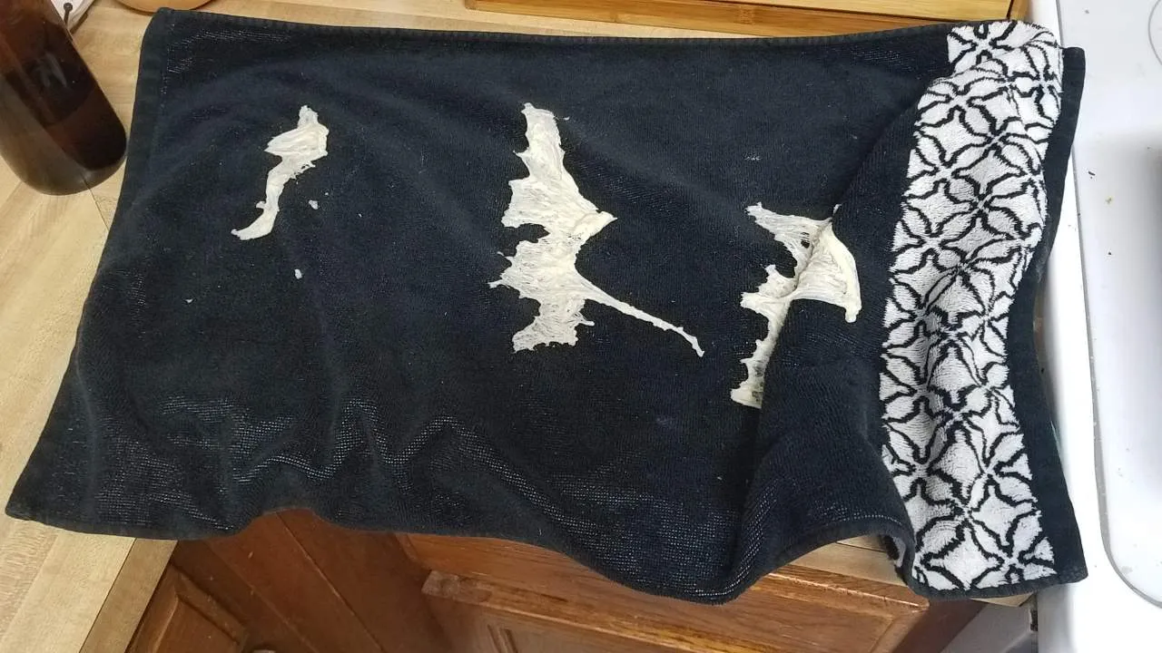 This first photo is of the loaves after raising for the second and final time. They should NOT look deflated.. but they do, and shit happens. They turned out great though, and I might just do this on purpose next time. The dough raised so much it literally stuck to the towel! Ha!