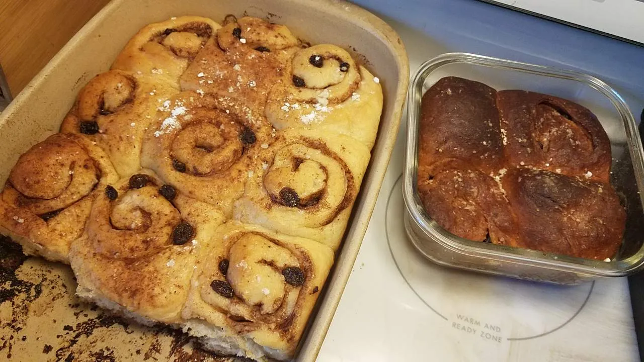 All is well, however. Those 3 loaves look funny, but cut just right - neither too dense or hard OR soft and flakey. The cinnamon rolls and extra dough baked nicely.