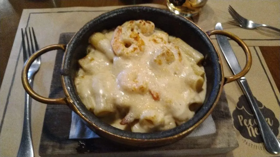 Massa com camarão ao molho de queijo