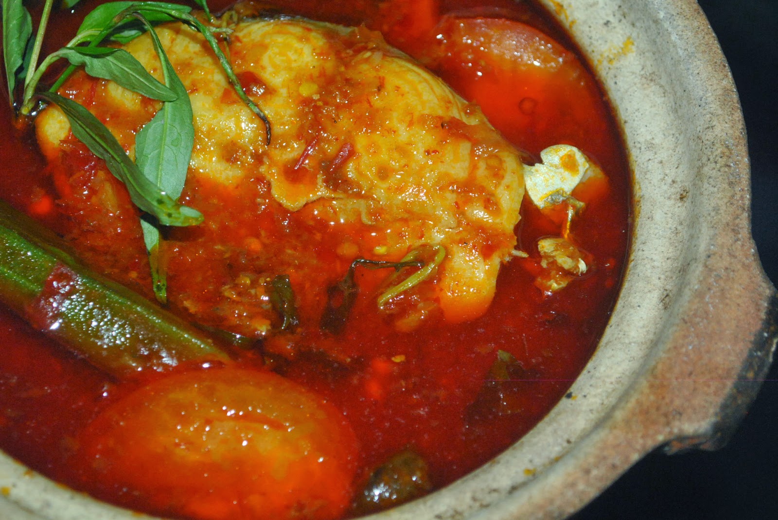 Many Nyonya curries (as curries from the Peranakan community are called) add assam paste. This paste is made from assorted spices and tamarind, which impart a sourish flavour. Curries that use assam paste are infused with an underlying tangy flavour. My mom enjoys this flavour thoroughly, but it is not my favourite.