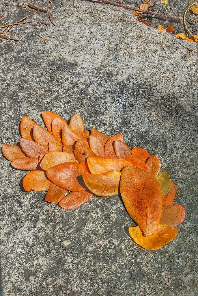 Una vez vi a un fotógrafo que solía tomar elementos de la naturaleza y ensamblar formas, escenarios y más para fotografiarlos. Desde el momento en que vi ese estilo me encantó. En parte porque lo hago todo el tiempo, especialmente con las hojas. En esta oportunidad tomé algunas hojas caídas y formé un ala y un pájaro con ellas. Realmente me gustaron los colores naranja y amarillo en esas hojas y al jugar con ellas salieron estas figuras. Las hojas eran perfectas para representar plumas en este caso.