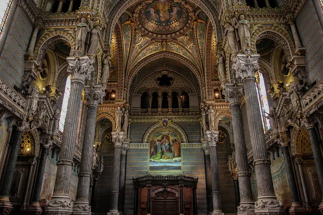 4: The interior of the Basilica of Notre-Dame de Fourvière contains wonderful mosaic work and is supported by 16 ornate columns.