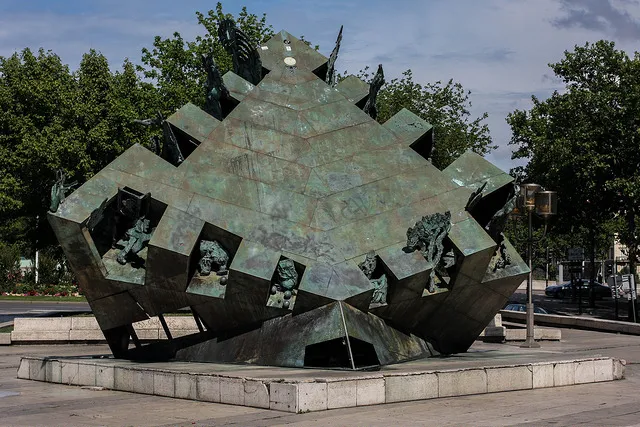 10: This scultpure called Pyramide de l'histoire de Lyon is located outside of the Opera building.