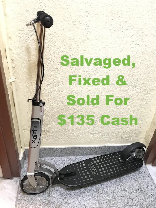 I didn't intend to write this post tonight, but I stumbled upon this picture from 2016 on my laptop tonight and it sparked a flood of thoughts. This item below was one of the first things I ever fixed. This scooter was folded up on top of a recycling pile down the street from my apartment. The owner had crashed it into a curb and knocked the entire front out of whack. The brake was messed up and it looked bad.