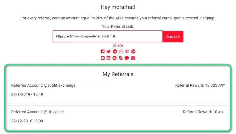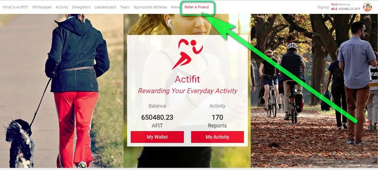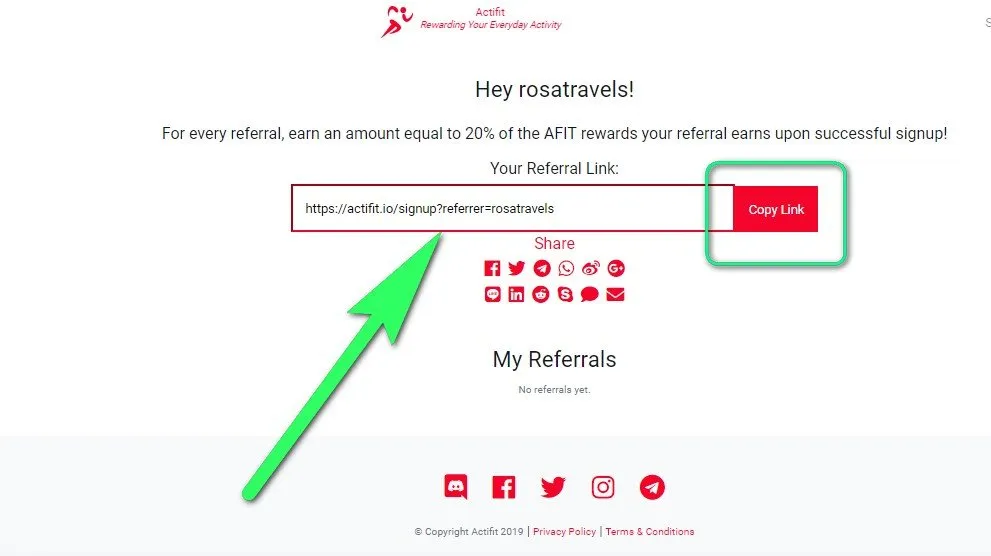 In Actifit, there is a referral link on your dashboard.