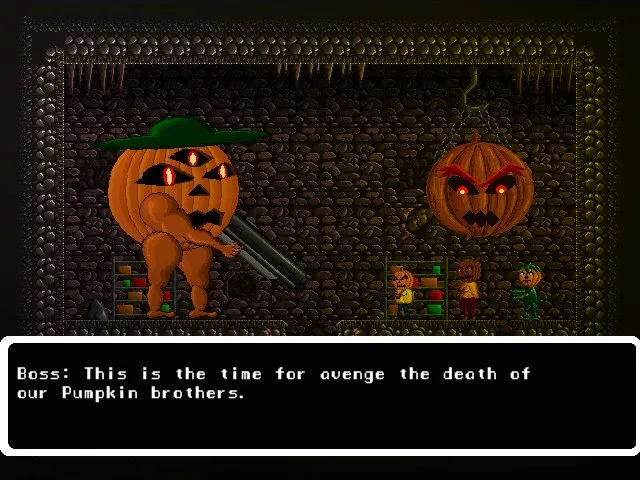 The game is an average platformer with a bit of shooting, one feature I should mention is that there's delay between shoots, that can be used for interesting challenges but in my play-through the delay didn't cause me any problems (the pumpkins are far from each other.)
