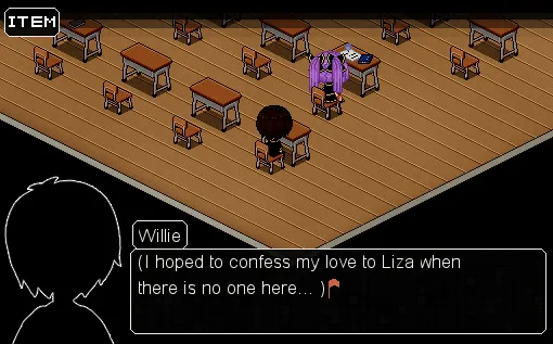 In this Game you play as Willie, a guy (You) who wants to confess to his crush Liza. you can confess immediately or wait for the right moment, preparing the classroom and making sure you two are alone, But you only have until she completes her assignment to do so.