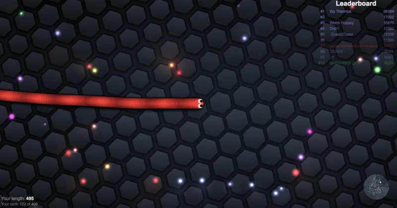 In the event that you at any point had a Nokia telephone, you're presumably acquainted with Snake, a diversion where you attempt get longer by eating pellets without traverse your own particular body. Slither.io is multiplayer Snake, where do you need to maintain a strategic distance from yourself, as well as need to abstain from hitting different players. It's a little nerve wracking yet in addition simple to get sucked into. You control your snake with your mouse, and it may develop to a ridiculous size, or as I simply got, taken out by another snake named "Worm Pussy." The quickness of most play sessions make it simple to pass the mouse forward and backward between players endeavoring to exceed each other.