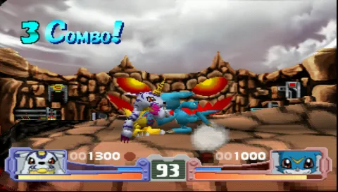 Even so, Digimon Rumble Arena was a game where I had a lot of fun fighting other Digimon, had a game mode that had quite similarity with Super Smash Bros, because the scenarios where the fights were disputed, were wider and we could move more freely compared to a more classic fighting game. In each scenario you could find different powers in the form of a card, where one of them could help us have an advantage against our enemy, but some also hurt us in battle, therefore we had to be alert of many things on stage.