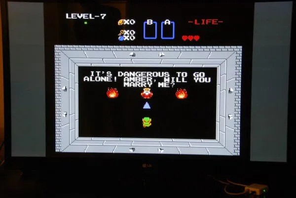 For other gamers, the unique one of a life time date 11/11/11 might reminds about the release of Skyrim, but for Amber that day would be remembered as the most beautiful day of her life. So her boyfriend been spent some times with his roommates to finish the old The Legend of Zelda, and secretly hacked the game for the sweet proposal.