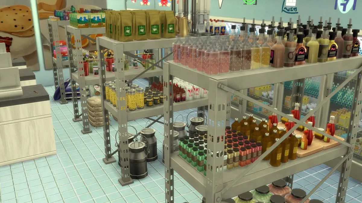 So it's not only the exterior, but the interior as well, and it's not less accurate. While DrGluon work on the exterior, the interiors were done by a YouTuber--a Sims YouTuber to be precise--Loverrlee. The screenshots above are the inside of Pierre's General Store.
