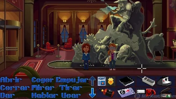 This interface was named SCUMM, Scrip Creation Utility for Maniac Mansion, and would suppose from that then a standard of the sort, imitated until the satiety until after The Curse of Monkey Island and finally Full Throtle of the own Lucas would evolve towards a more direct and graphic interface. How could it be otherwise, if Ron and Gary wanted to bring back the charm of the classics of the genre, the return of the legendary SCUMM was inevitable. Nine verbs located in the lower left corner of the screen will allow us to unravel the mysteries hidden in this picturesque town. To the right of the interface is the inventory, where, unlike the first version of the SCUMM, graphic representations of the multiple objects that we will collect instead of just its name are shown.