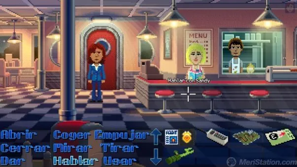 The real heart of Thimbleweed Park are its brainy puzzles, inherited from the best classical tradition of the genre. They are integrated excellently in the adventure, and pose a phenomenally raised challenge. They need to be attentive to every detail, every conversation, and the use of lateral thinking and large doses of ingenuity to overcome them. How well they work and how tremendously successful their resolution is turns out to be one of the main attractions of the title. We must consciously search for objects on the stage to use them in the most ingenious ways, choose the appropriate dialogues in the many conversations present in the adventure, and know how to provoke situations from which to take advantage to achieve our objectives. One of the main features of the game is that we handle five characters, being able to exchange the control of each of them at any time. Except for a specific case that has unique abilities, the handling of the other four characters is identical, but we must coordinate them and have them work as a team and exchange objects between them to overcome some puzzles.