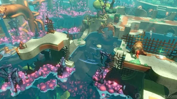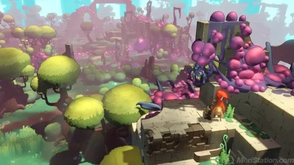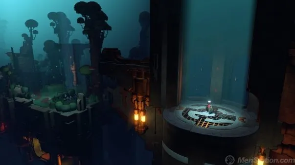 As for the "macro-transformations", evidently they occur less frequently, because they are responsible for adding explorable areas to the map. Sometimes they are visible from far before, but distributed to different heights, so they are not accessible until we overcome a chain of steps that allow us to reposition the pieces to build an increasingly larger world. These events are treated as such, and have less qualms about taking control of us to enjoy brief sequences in which large blocks rise and fill the horizon with new content. Some of them are particularly ingenious, since they not only show the surface section, but they also simulate a momentary pass through the inertia of the ascent to show an appetizer of what awaits in the underground section and put the honey on our lips. Most of these extensions take place on pedestals prepared to use items claimed in other areas, but later in the game there are other methods to reach new territories, such as the use of pipes to drive water to dry areas.The end of the game is accessible without needing to get to see the whole map , but precisely this peculiar way of opening up through it makes it entertaining to do it anyway.