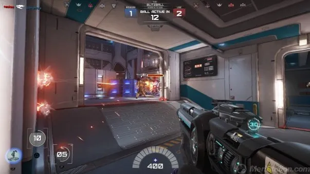 We will have the possibility to enjoy eight maps , following a symmetrical design scheme, medium size closer to small. The narrow corridors prevail as a connection to the most important rooms, mainly where the bases of each team and the central zone are located. The sensations in general lines are really good, the approach of gravity is a fresh resource that works like a charm.and sometimes you can play with the effect to gain speed when leaving your field, such as the use of an impeller or shoot backwards so that the force of the projectiles gives us that extra push that in certain game modes come great. Although the rotation does not always work as it should, all maps are compatible with all the available game modes; however, some are more likely to appear on some levels than others.