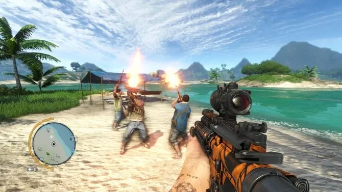 Let's immediately cut the most legitimate fears: No, Far Cry 3 does not perpetuate any of the mistakes made in the previous episode. At the same time, you can say goodbye to all the heaviness that weighed on the shoulders already too frail Far Cry 2Malaria, weapons that are jamming, barbating roundtrips, superhuman detection by soldiers four miles from you, automatic border checkpoints, all that is trash. Admit: we breathe already funny better like that? Well, I'm not going to lie to you: the game comes with two-three jokes of his own in his pockets. In addition to a few straight chouya missions, very (very) permissive infiltration possibilities and a strange fascination for dubstep-based soundscapes, it is especially when one puts his eyes on his HUD that the desire for him sticking a slap on the snout is violent. By abandoning the "realistic" claims of the second installment, we also inherit a display of indicators that are all broken down: current objectives, of course, but also a gauge of threat / visibility in pairs of eyes placed on you and reminders text very fat impossible to disable in the options. Yes, but here, in general, none of this would undermine the obvious pleasure of the title. It would even dab a little shell, as long as you allow me the fantasy. Ah, it is announced that we are currently flying over Rook Island. Put on this parachute, because I'm about to throw you into the void. One day, you will thank me. you would even dab on the shell, if you allowed me the fantasy. Ah, it is announced that we are currently flying over Rook Island. Put on this parachute, because I'm about to throw you into the void. One day, you will thank me. you would even dab on the shell, if you allowed me the fantasy. Ah, it is announced that we are currently flying over Rook Island. Put on this parachute, because I'm about to throw you into the void. One day, you will thank me.