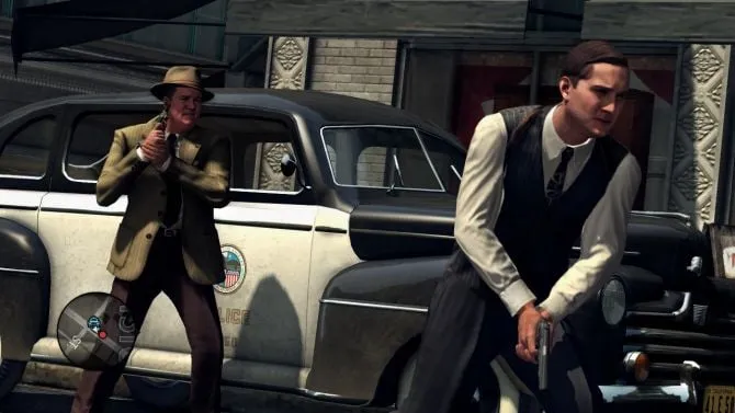 I was a little afraid of failed action scenes. In fact, they are not very bright it's true, but they are rather successful. Many suspects start to flee, it will continue. Some, violent, can be shot, or stopped alive from a shot in the air if they can be held long enough (a small gauge fills around the reticle) as they take their legs to their feet. neck. Others will be grounded if caught effectively. Whatever happens, you're going to cavort a lot in LA Noire. Similarly, the 40 crimes that can appear spontaneously in the city are almost always a shooting and bags with stiffness. The bare hand fights are coming, too. A trigger to hold down to face his opponent, a button to dodge, another to hit, a third to enter: it's basic, but it does its duty. The exchanges of shots, they are a little more interesting thanks to a system of correct coverage. But the most fun remains in my opinion the pursuit of heavy cars of the time. However, overall, these recurring aspects of cop work remain a bit repetitive, because they are not as exhilarating as the rest, the heart of the game Fortunately, there are several very unique scenes exist, anchored in a particular case or a precise place, to vary here and there the action, and Team Bondi thought of those who prefer the investigation especially or struggle to pass these sequences by allowing them to zap. Finally, the open city aspect remains quite under-exploited, a bit like aMafia II . There are hidden cars to flush out, reels to find, that kind of stuff. Identifying monuments of the city will better cross a particular sequence in the form of treasure hunt, but does not offer a very fun activity. On the other hand, during surveys, newspapers hang around here and there, triggering cutscenes that are very important for understanding the overall scenario and central characters. Because if each case seems separate at first, we do not cross all these departments of police without recrossing important personalities of the city, its politics, its corruption, its criminal milieu ... and for once, the The whole is beautifully put together.