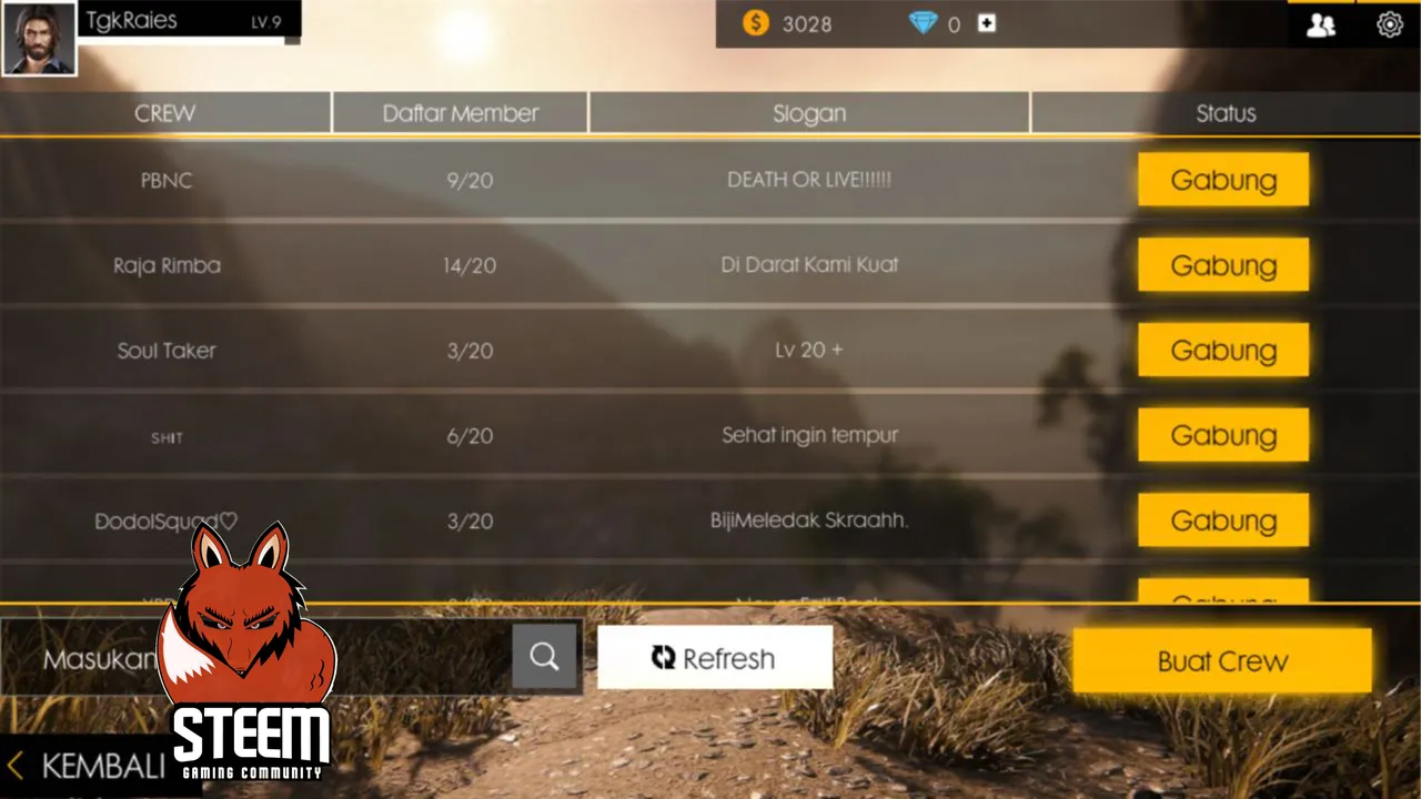 In the crew menu we can choose any crew that we want to join but we can not just as good as it is to get into the crew when we join we also have to wait hinga we accepted when entering the new crew we can start the crew menu for our use but we can just make our own crew by the way we need 5000 to make crew and name of our own crew