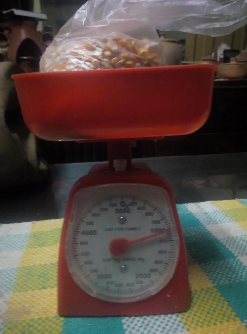 Una vez extraída la semilla de Maíz procedemos a contar las mazorcas para posteriormente pesar en una balanza la semilla agrupada. En este caso fueron 10 mazorcas y lo que se extrajo de semilla fue un kilo (1000grs) exacto, si dividimos la cantidad de semilla extraída entre las mazorcas tenemos como resultado 100 gramos por cada mazorca fue el rendimiento que se obtuvo. Así mismo podemos decir que los resultados de la siembra del cultivo de maíz estuvieron excelentes, por lo que vamos a volver a repetir el cultivo, pero mas intensificado, con esto quiero decir que espero recolectar la siguiente cosecha un promedio del 300% más; es decir, esta vez no vamos a sembrar las 10 plantas sino 200 o 300 plantas, con esto estamos planificando que a 3 meses podamos estar recolectando semilla para sembrar una hectárea.