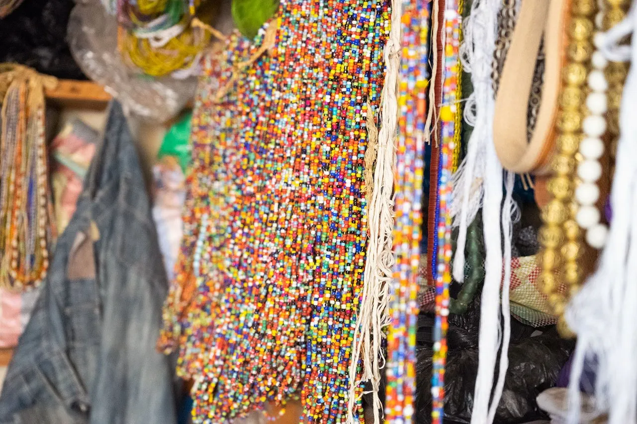 We pressed on as best we could, pausing often to chat with other sellers or to do some shopping. Just as we had gained some pace, someone would slow us down... such as the guy selling beads, who spotted a flash of white skin from deep within his shop, and came running out shouting at us to turn around. He was positive we were in the market for beads. And he was right! I picked up an awesome bracelet for a few bucks, and even haggled a little, much to his delight.