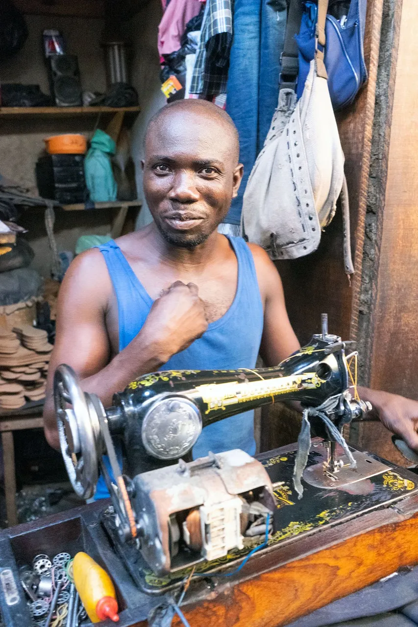 Diving headfirst into the westernmost alleys of Kejetia, we found ourselves in the section where Kente cloth is sewn and sold. We politely declined the overtures of a hundred merchants and, squeezing past people balancing food on their head, turned left at the next corner. Then a right and another right? Or wast it straight and then left... anyway, soon we had arrived at the toiletries section.