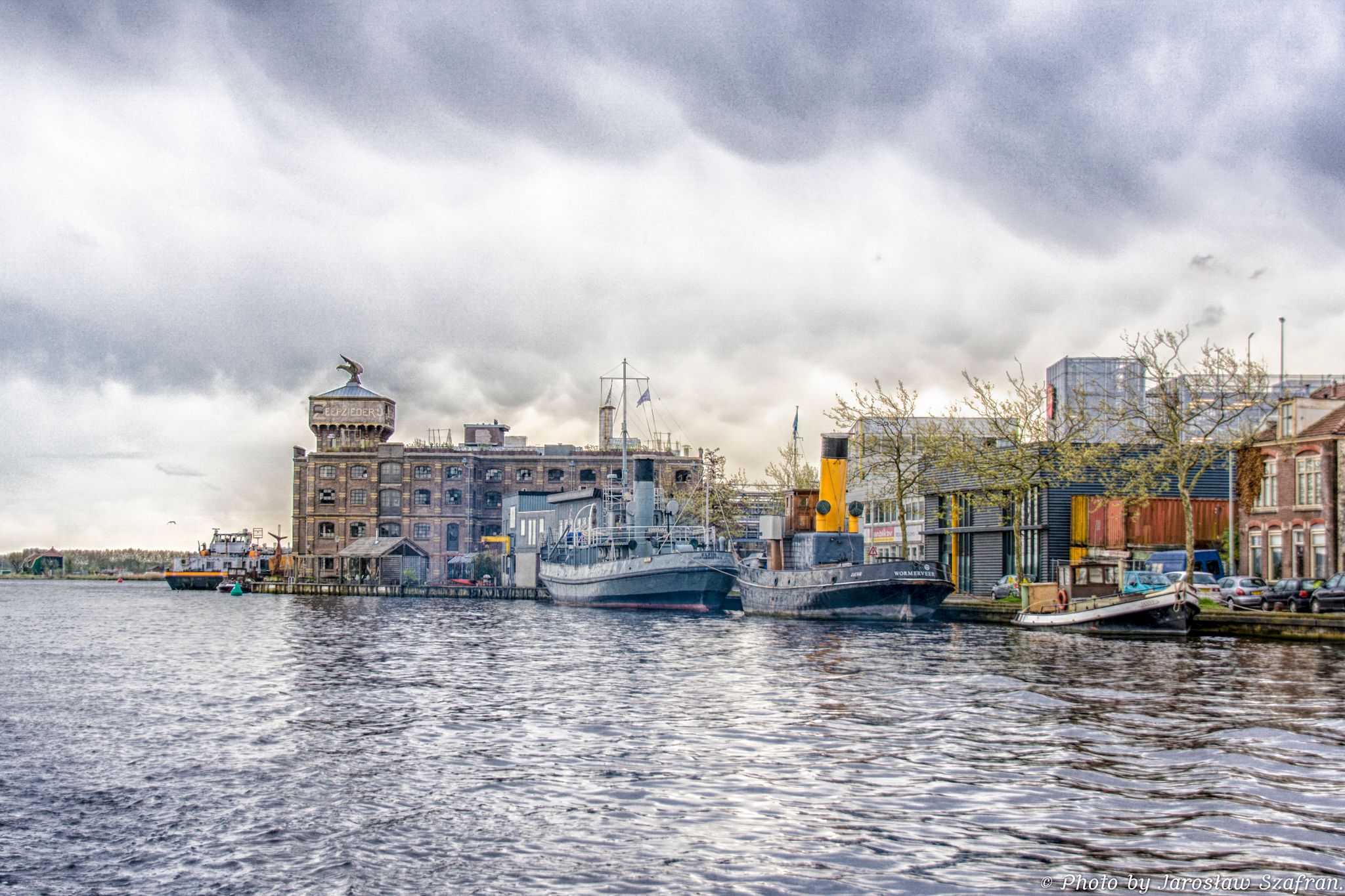 Przystań przy starej fabryce mydła w mieście Wormerveer w Holandii.