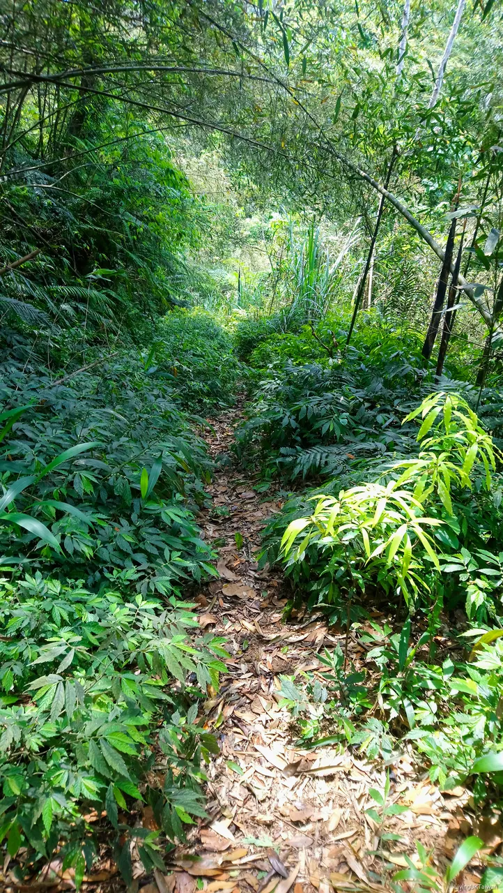 後半段路雖然不用攀山拉繩子,但也不比前半段好走。 古道沒維修,人煙稀少只能靠之前登山隊留下零碎的標記走。 好不容易見到前面有拍油路,終於走出森林啦!
