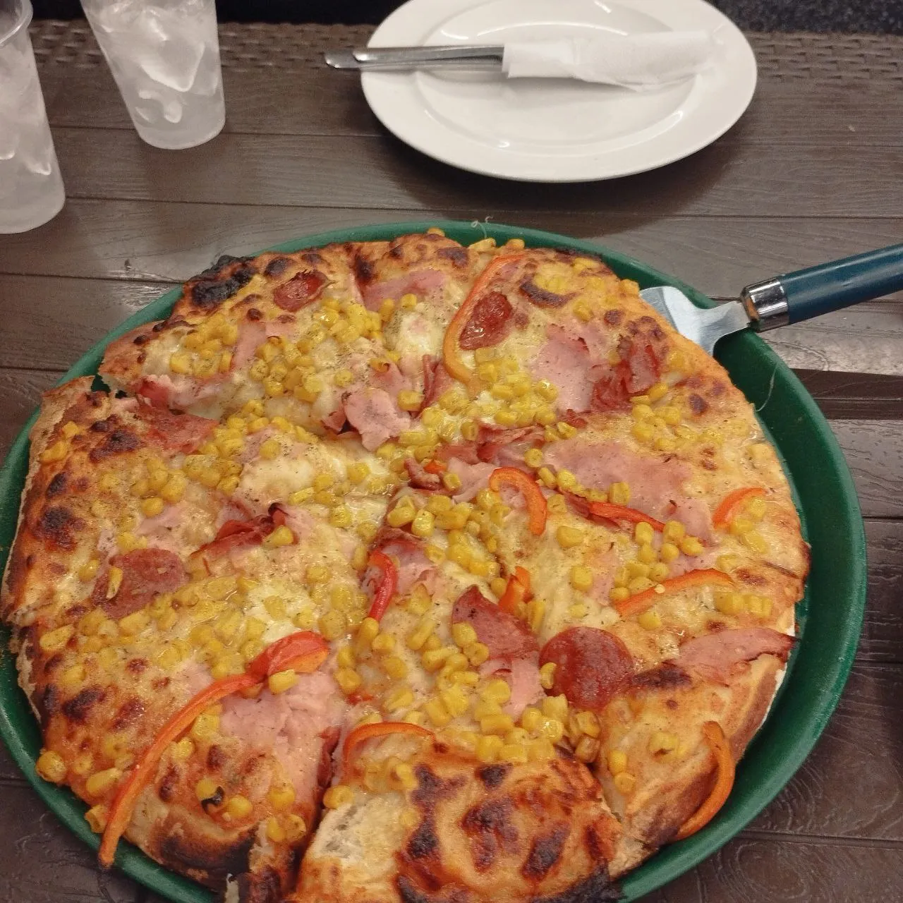 Y que más puedo decir, la pizza superbuena, en las fotos se puede apreciar que no le negaron el maíz, que para mí es lo más bueno, supercargada, a pesar de no llevar muchos ingredientes. En comparación a otros sitios que he ido, no me puedo quejar.