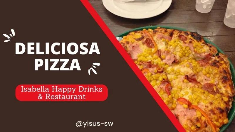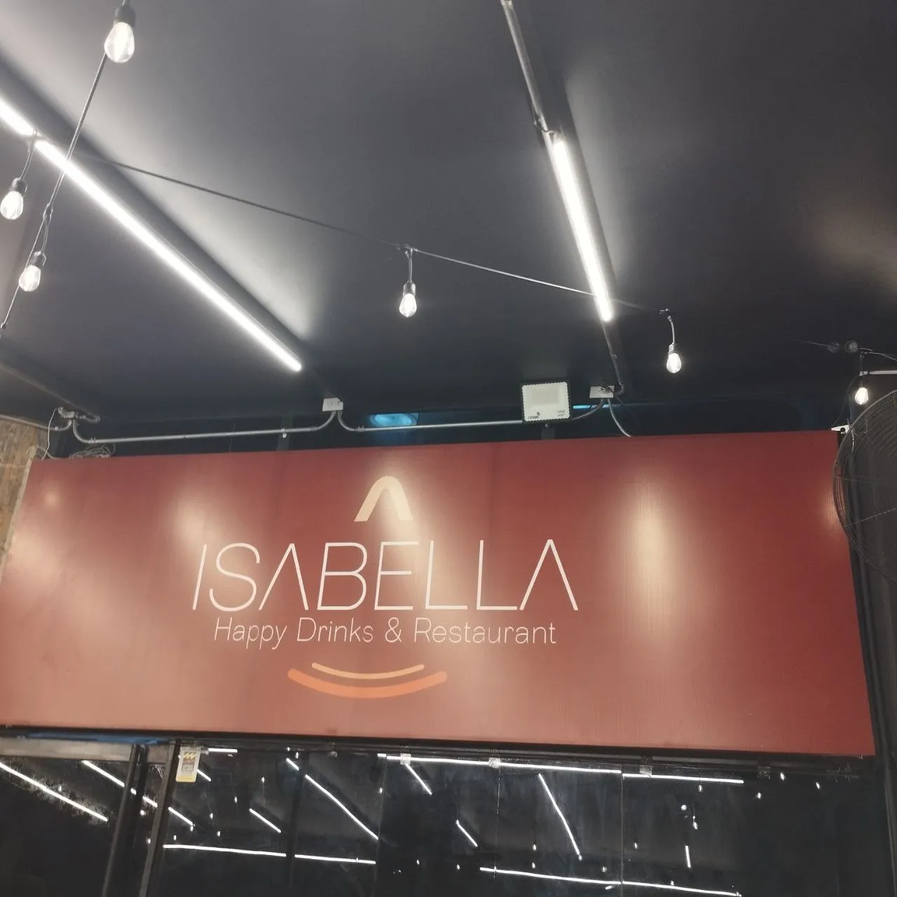 El sitio en donde comimos se llama Isabella Hapyy Drinks & Restaurant. Cuando me mencionaron el sitio me pareció raro, más cuando me dijeron que íbamos a cenar pizza, ya que comúnmente solemos comer en otros sitios, pero yo bien emocionado de probar mi comida favorita en un sitio a donde nunca había ido.
