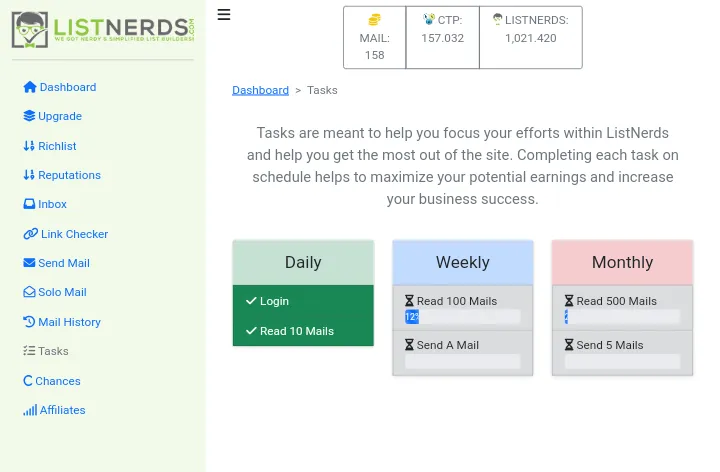 So, I continued until I completed reading 10 mails at Listnerds.