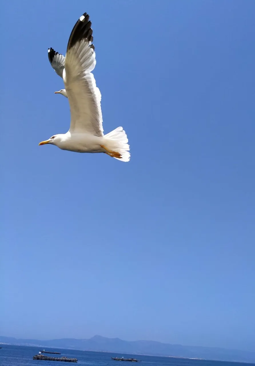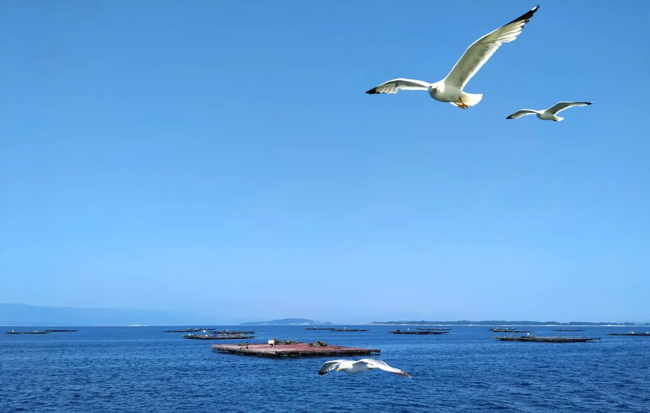The seagulls are very intelligent birds, and most of them are already familiar with the catamarans in the area and know that we tourists are inside them, eating steamed mussels inside.