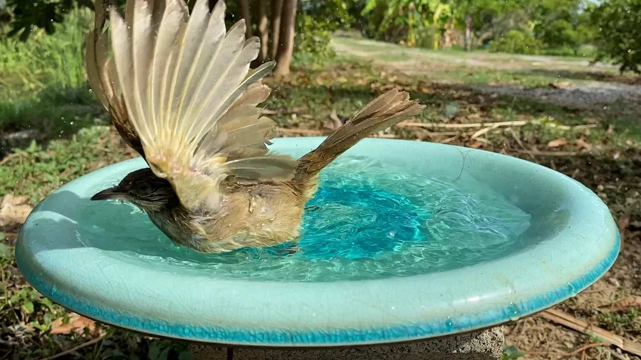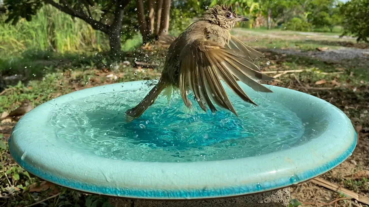 I put my iphone on a tripod right next to the bath and sat a few metres away with a bluetooth trigger. I certainly ended up getting a lot of wings! And my phone ended up getting a lot of splashes!