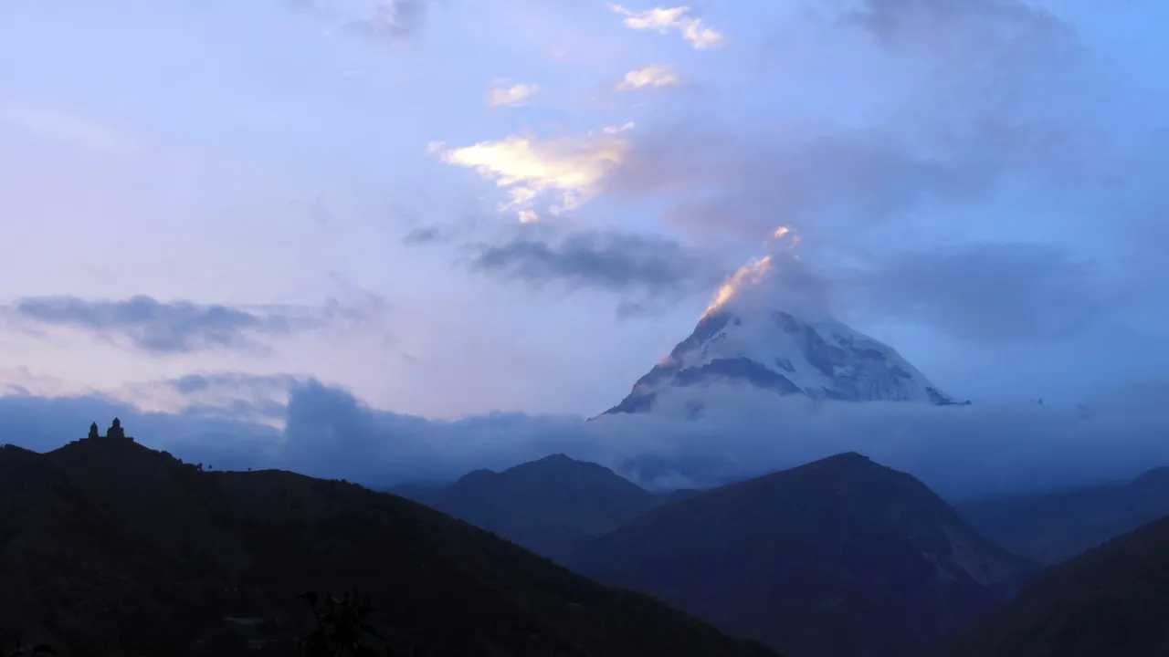 There was a beautiful view of Mount Kazbek, which measures 5,047 m above sea level. As we were quite high, the climate was quite harsh, and it could snow in the morning.