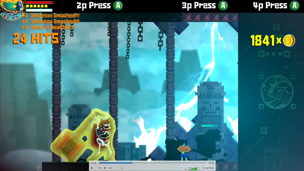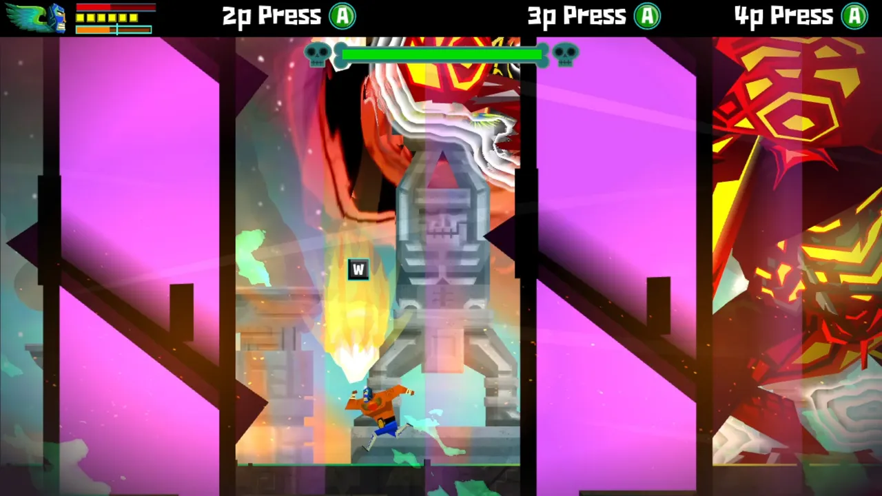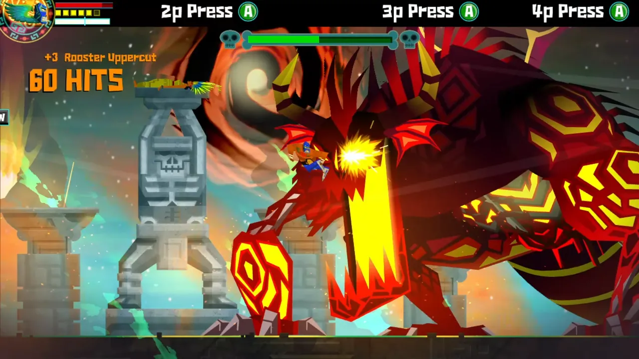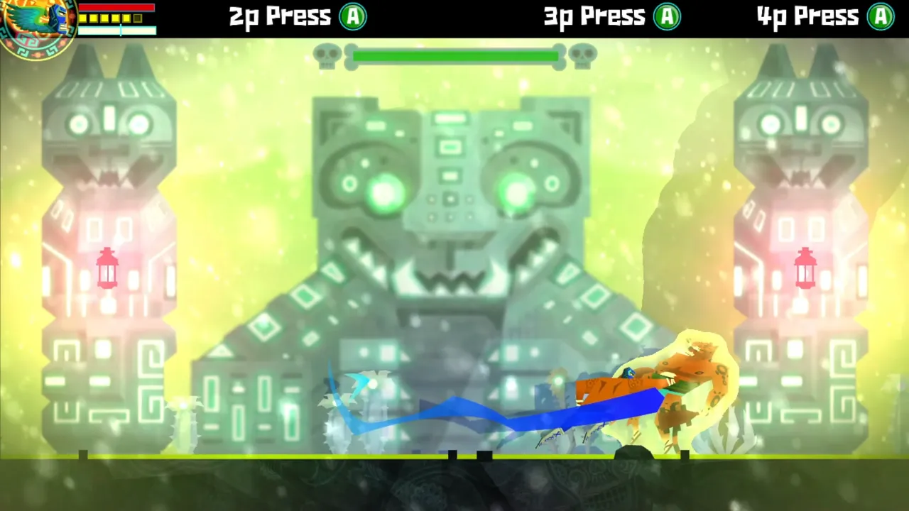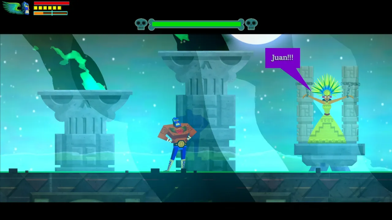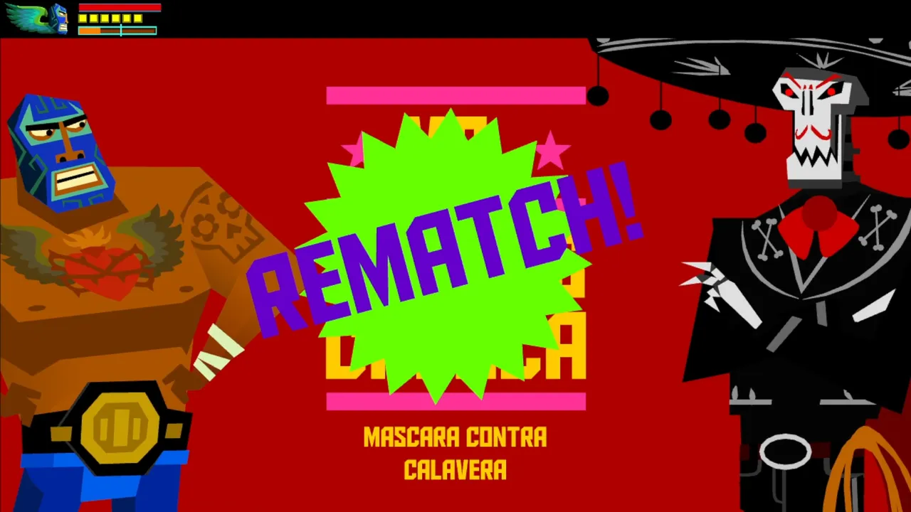 Nuestra reunión con Juanita fue interrumpida por Calaca, quien por fin se dio cuenta que somos aquella persona que había eliminado al comienzo del juego. Este jefe no fue fácil y esta batalla no estaría completa sin una segunda fase. Esto es muy normal en esta clase de juegos.