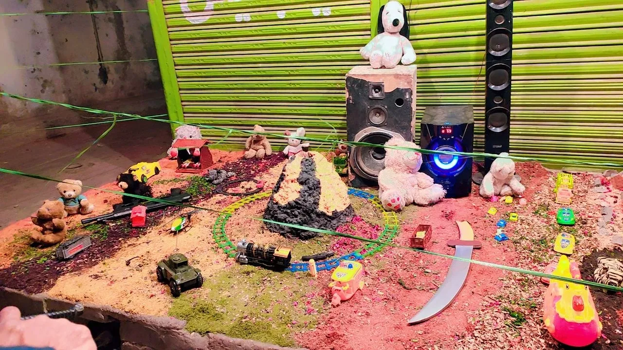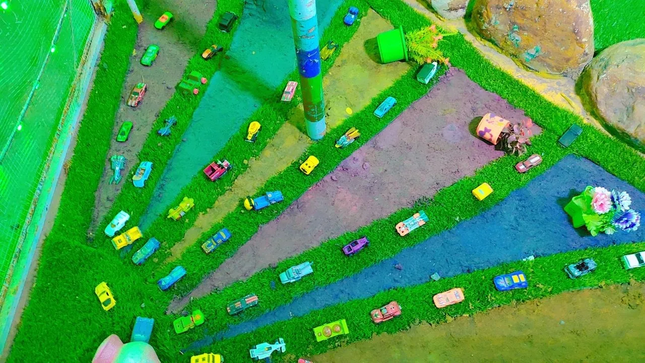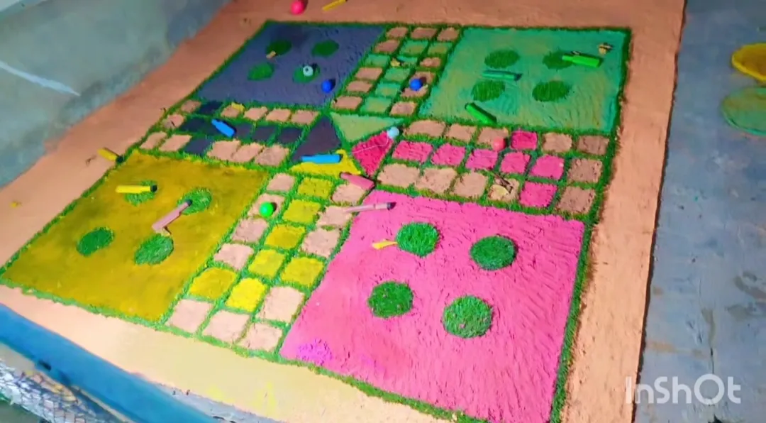 As you can see in these two pictures, they were also made beautiful with the help of stones and the children kept their teddy bear cars and other toys here as you can see in the pictures and here. But the color of the soil was also changed to different colors due to which this place also looked beautiful.