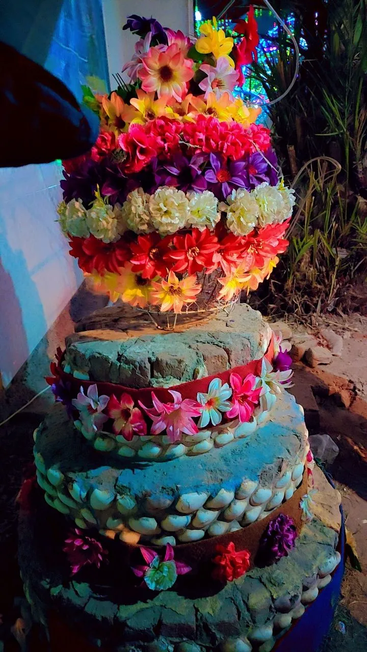 A little further, here people made this beautiful thing with stones and then all the flowers were planted on the top of it and lighting was done on the sides which made it look very beautiful. So I took a picture of it and now I am showing it to you.