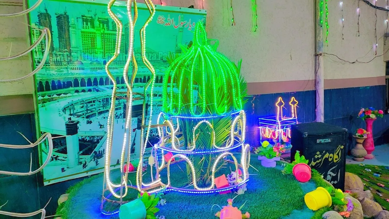 Multan come to see them, especially children are very happy to see them. The house of Prophet is also built here and the house of our beloved Prophet is also built here, as you can see in the pictures, this day is celebrated in a very beautiful way and every Muslim is very happy. happens.