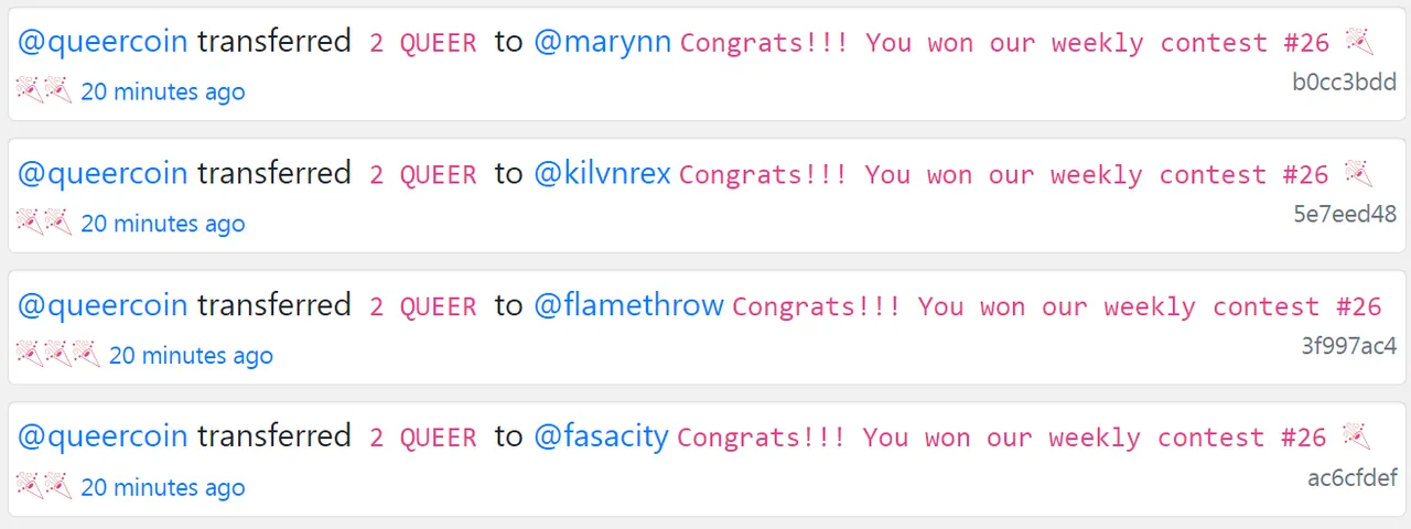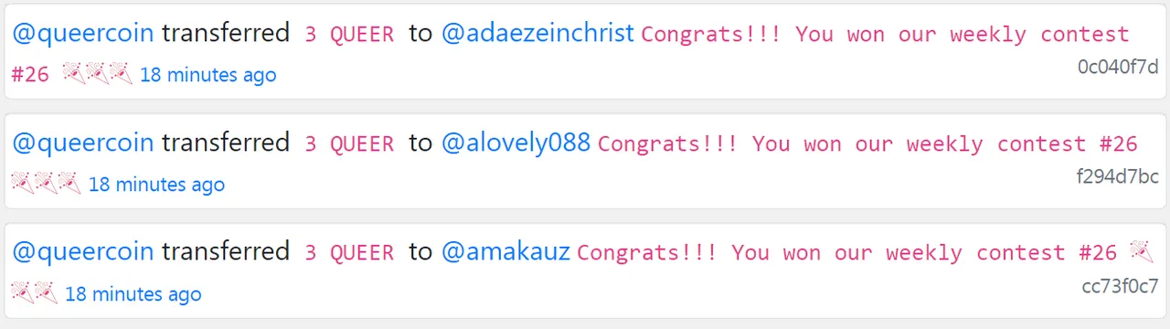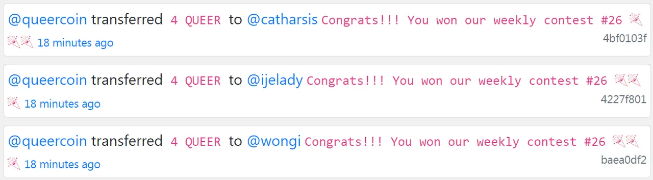 • 3 winners will get 100 Ecency points and 4 QUEER each.