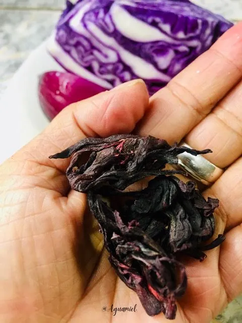 Añadimos la flor de Jamaica para darle color y sabor junto a dos vasitos de agua, dejamos hervir, probamos el sabor y apagamos.