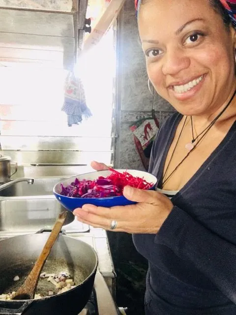 Luego agregamos el repollo y la remolacha, añadimos las especies y removemos integrando sabores.