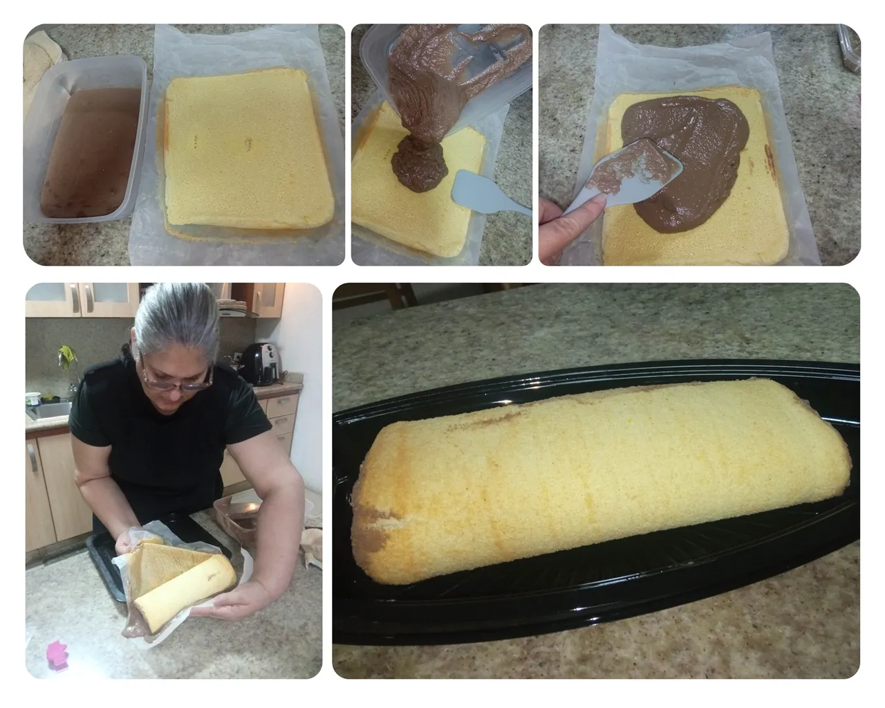 -Se le va aplicando el chocolate con la manga, y finalmente se esparce por todo el bizcocho hasta dejarlo uniforme.