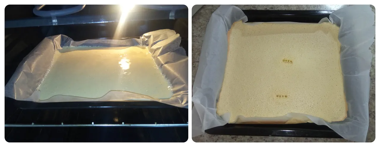 -Stir gently and pour it in a tray with waxed paper. It is placed in the oven at 250º for approximately 15 minutes.